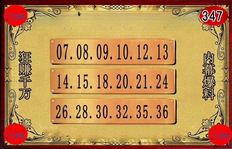 347期:暴富密码开?00准 ⑻码 23 12 31 35 36 11 19 47 ⑸码 23 12 31 35 36 ⑶码 23 12 31 ⑴码 23 ①肖 羊 ②肖 羊马 ③肖 羊马猪 ④肖 羊马猪牛 ⑤肖 羊马猪牛猴 ⑥肖 羊马猪牛猴蛇 两波 红波+蓝波 六尾 1-2-3-5-7-9 平特 羊年时时洽春风 |