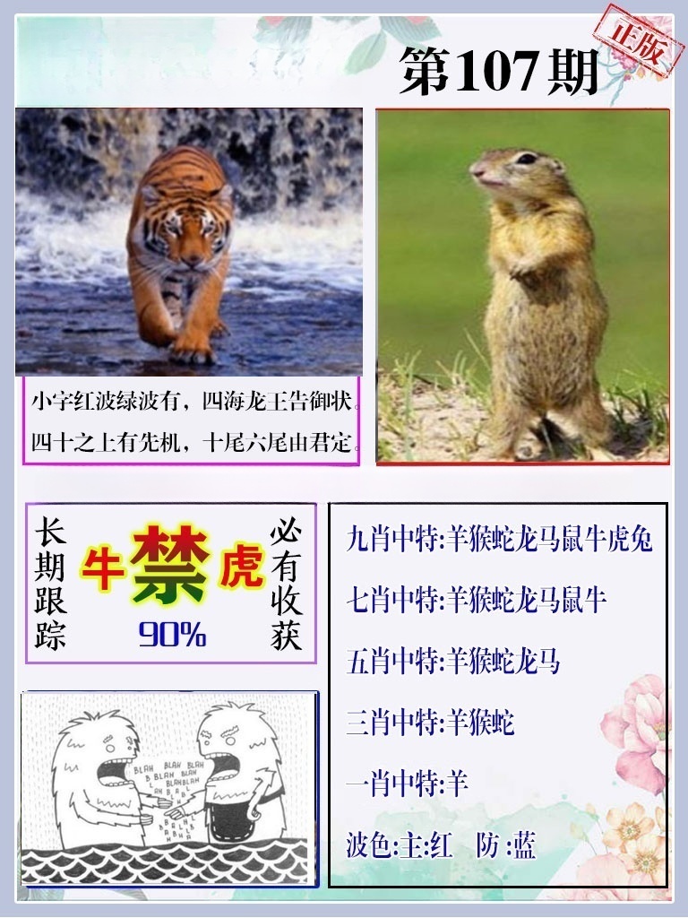 | 107期:※二波中特※【红波蓝波】开?00准 |